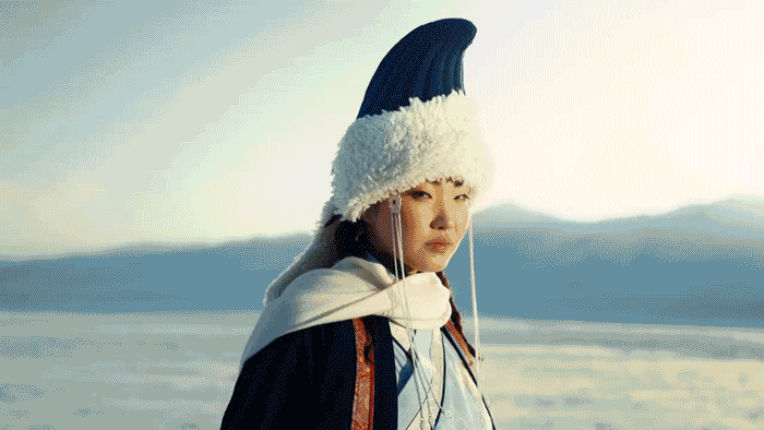 本次队服由Goyol Cashmere设计,整体在传统蒙古族传统长袍“德勒”的基础上做了侧开叉的创新。高立领和交叠前襟搭配丝质滚边和传统的羊角纹保留了传统蒙袍的结构,细节在冰原上格外鲜活。这是那种——站在雪原上,一眼就不会认错的游牧民族文化自信。