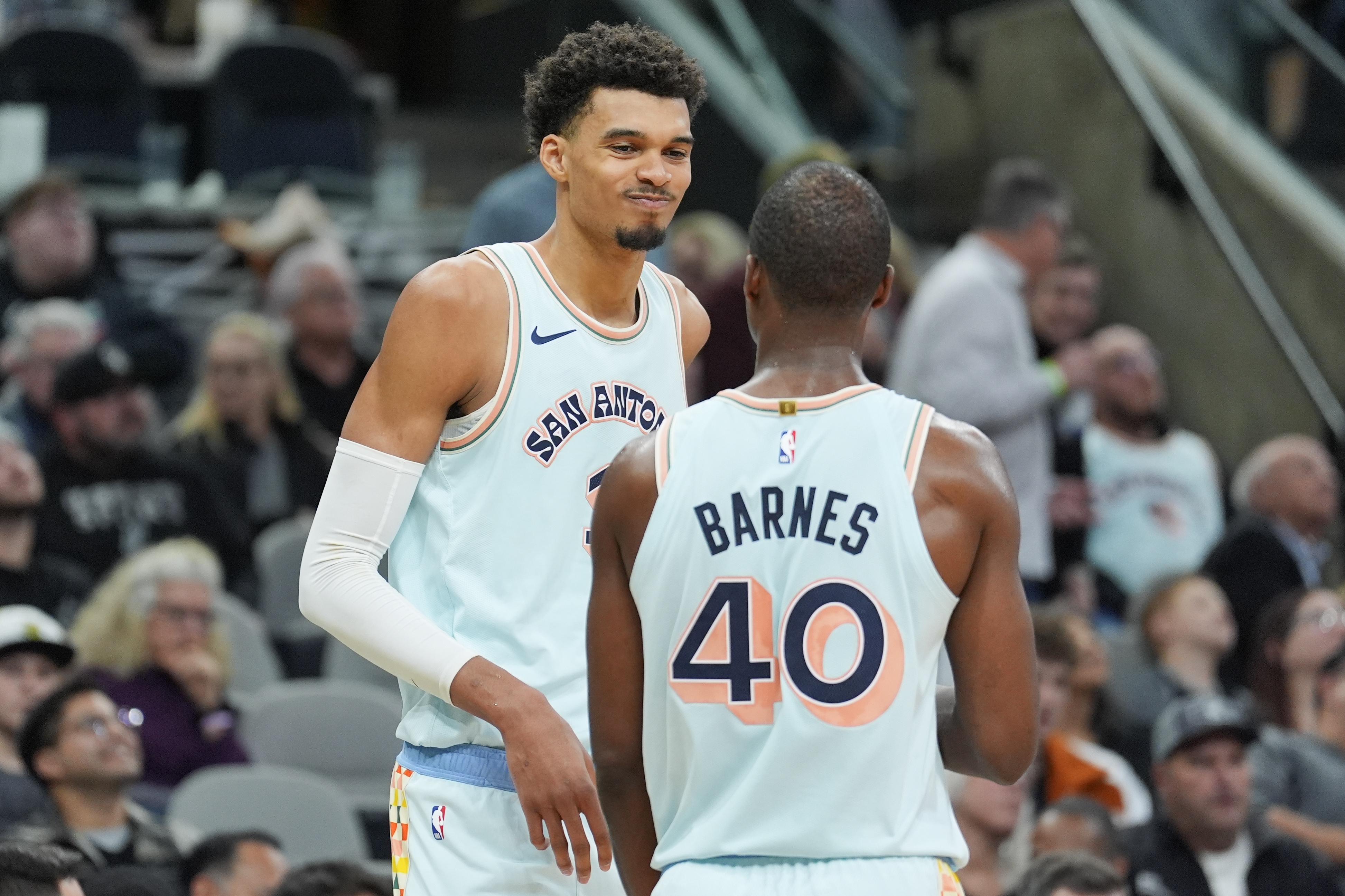 文班亚马:”他已经证明了自己是值得信赖的。所以我们会继续把球传给他,他也会继续把球投进。这就是巴恩斯,自从我认识他以来,他一直表现得非常……怎么说呢,非常得体。你几乎没法说他做错了什么,他在场上总是无懈可击。”